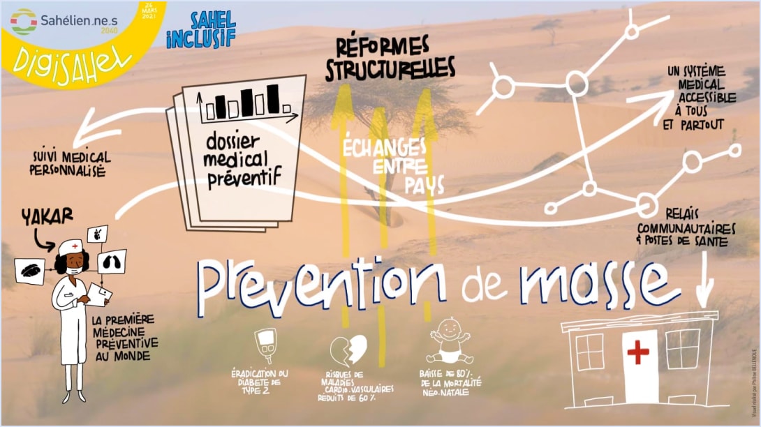 Cette région est devenue aujourd'hui la première médecine en préventive du monde, montrant une véritable lueur d'espoir pour notre avenir. Aujourd'hui en 2040 au Sahel, grâce à nos efforts sur la prévention de masse, le diabète de type 2 a fortement baissé, les risques de maladie cardio vasculaire ont été réduits de 60 % et nous observons une baisse significative de la mortalité néonatale de l'ordre de 80 %. Toute cela a pu se faire car nos pairs, en relation avec les États du Sahel, ont initié des réformes structurelles dans plusieurs secteurs. Grace à ces dernières, j'ai pu faire mes études de médecine générale à Niamey, me spécialiser en santé publique à Ndjamena et faire un master complémentaire en technologie émergente au Sénégal.